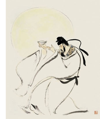 “李白一斗詩百篇,長安市上酒家眠,天子呼來不上船,自稱臣是酒中仙。”(杜甫《飲中八仙歌》)“醉里從為客,詩成覺有神?!保ǘ鸥Α丢?dú)酌成詩》)“俯仰各有態(tài),得酒詩自成。”(蘇軾《和陶淵明〈飲酒〉》)“一杯未盡詩已成,涌詩向天天亦驚?!保钊f里《重九后二月登萬花川谷月下傳觴》)。南宋政治詩人張?jiān)暾f:“雨后飛花知底數(shù),醉來贏得自由身?!本谱矶蓚魇涝娮?,這樣的例子在中國詩史中俯拾皆是。 不僅為詩如是,在繪畫和中國文化特有的藝術(shù)書法中,酒神的精靈更是活潑萬端。畫家中,鄭板橋的字畫不能輕易得到,于是求者拿狗肉與美酒款待,在鄭板橋的醉意中求字畫者即可如愿。鄭板橋也知道求畫者的把戲,但他耐不住美酒狗肉的誘惑,只好寫詩自嘲:“看月不妨人去盡,對月只恨酒來遲。笑他縑素求書輩,又要先生爛醉時?!薄皡菐М?dāng)風(fēng)”的畫圣吳道子,作畫前必酣飲大醉方可動筆,醉后為畫,揮毫立就。“元四家”中的黃公望也是“酒不醉,不能畫”?!皶ァ蓖豸酥頃r揮毫而作《蘭亭序》,“遒媚勁健,絕代所無”,而至酒醒時“更書數(shù)十本,終不能及之”。李白寫醉僧懷素:“吾師醉后依胡床,須臾掃盡數(shù)千張。飄飛驟雨驚颯颯,落花飛雪何茫茫?!睉阉鼐谱頋娔搅羝渖窆斫泽@的《自敘帖》。草圣張旭“每大醉,呼叫狂走,乃下筆”,于是有其“揮毫落紙如云煙”的《古詩四帖》。 |